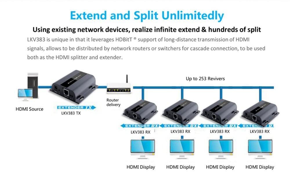 500ft 150M 1080P HDMI Network Extender Receiver and Transmitter Over Cat6 Cable HDBitT HDMI Extender Over IP with IR Control